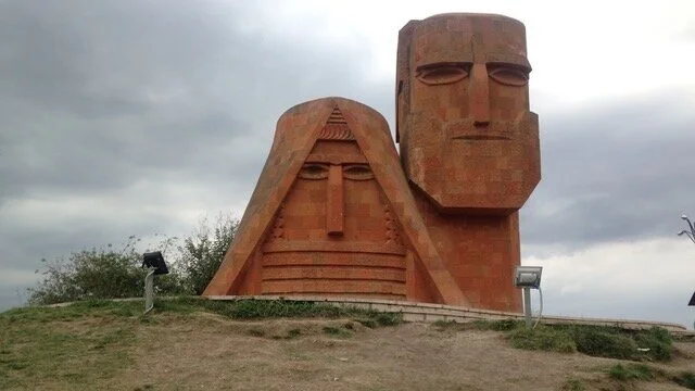 ‘We Are Our Mountains’ monument in the capital of Republic of Artsakh, Stepanakert (also seen in Artsakh’s coat of arms). Image courtesy of author